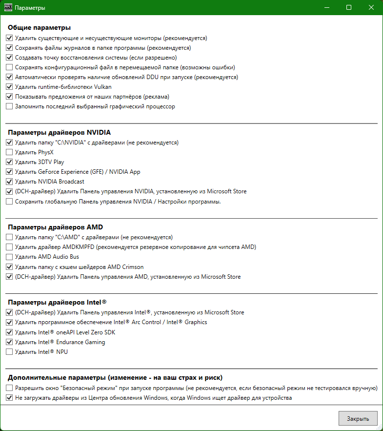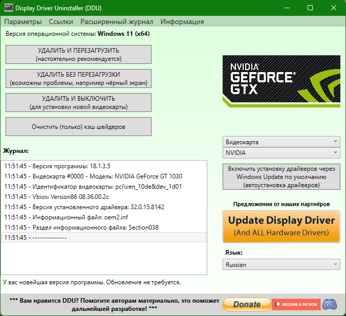 Рекомендации по использованию:- При запуске DDU необходимо отключить Интернет или полностью заблокировать Windows Update до тех пор, пока не будут переустановлены новые драйверы.