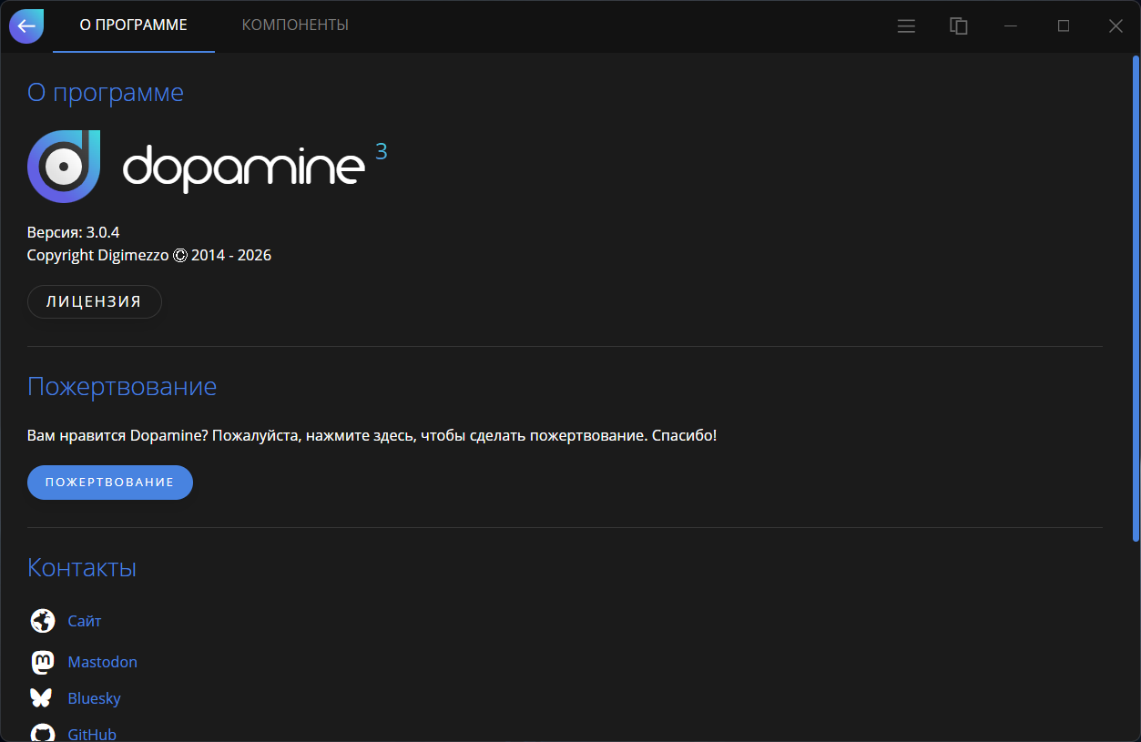 [3.0.0] - 06.11.2025Первый релиз!Основные моменты:• Поддержка нескольких платформ — Dopamine теперь без проблем работает на Windows, Linux и macOS.
