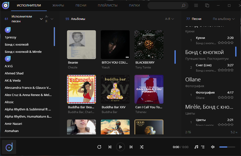 • Интеграция с Last.fm — скробблируйте свою музыку и загружайте информацию об исполнителе прямо с Last.fm.