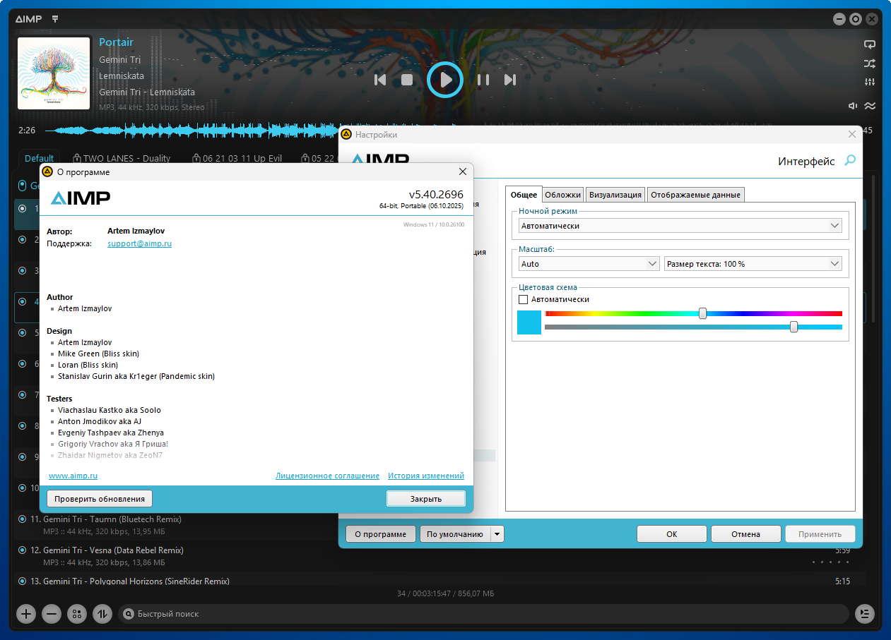 • Гибкие настройки программыЧто нового:AIMP v5.40.2696 (06.10.2025)- Исправлено: общее - ошибка при применении горячих клавиш (регрессия 2695)