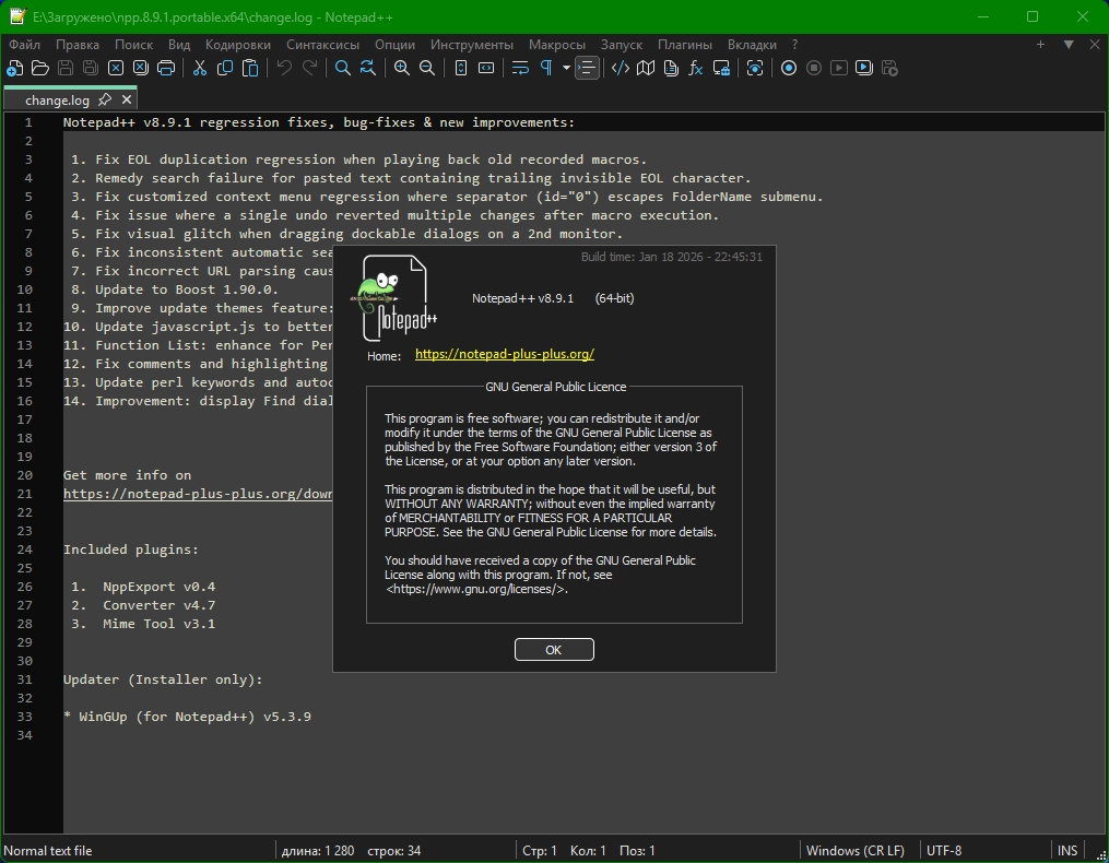 Скачать Notepad++ 8.9.1 Final + Portable через торрент: