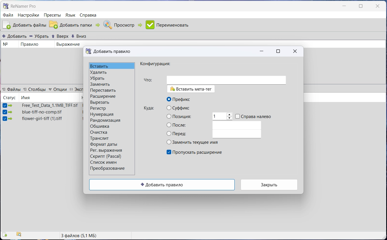• Добавление порядковых номеров, удаление символов и цифр и изменение расширения для файлов.