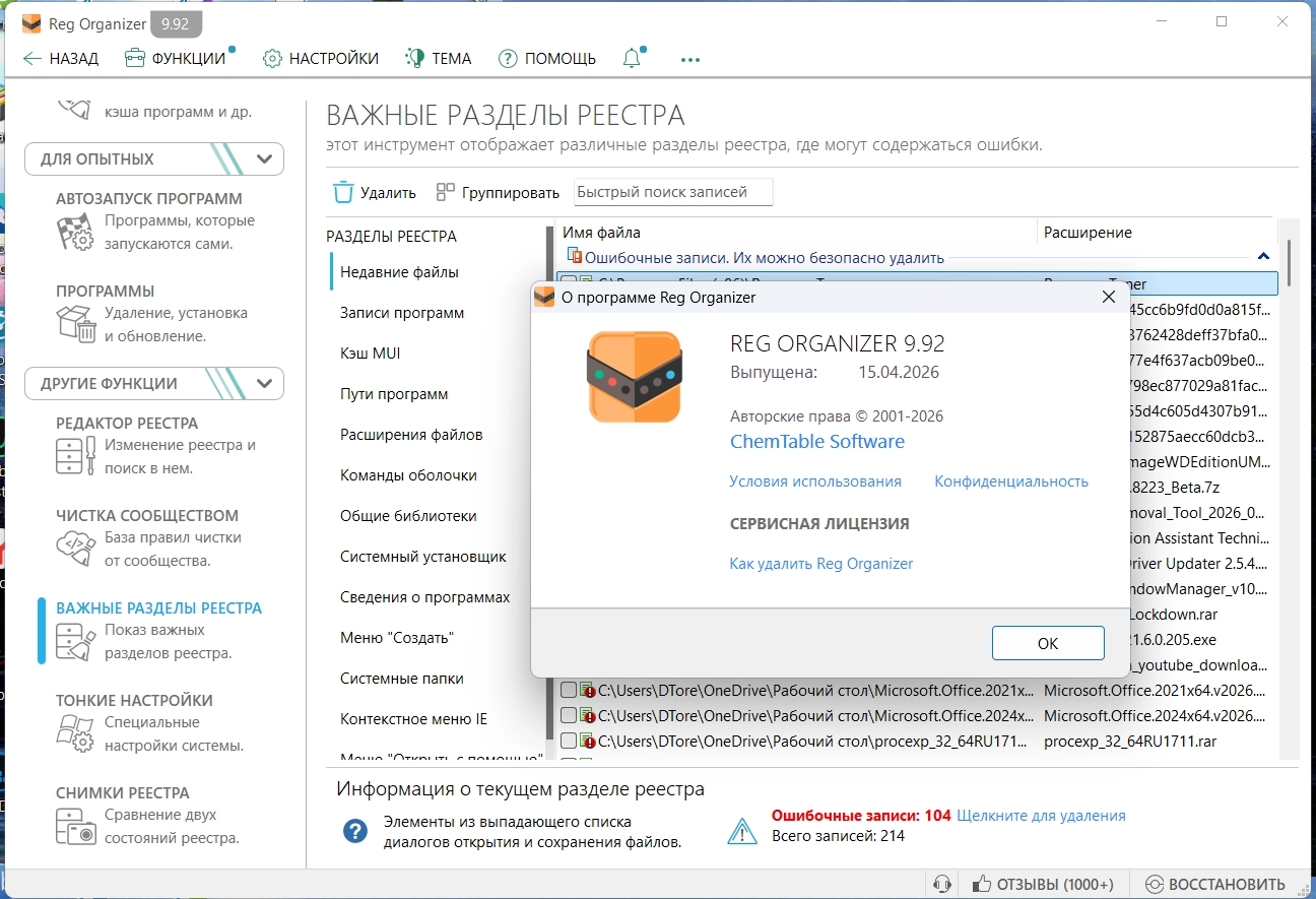 Предупреждение: Не используйте портативную версию при уже установленной.Скачать Reg Organizer 9.92 by Dodakaedr через торрент: