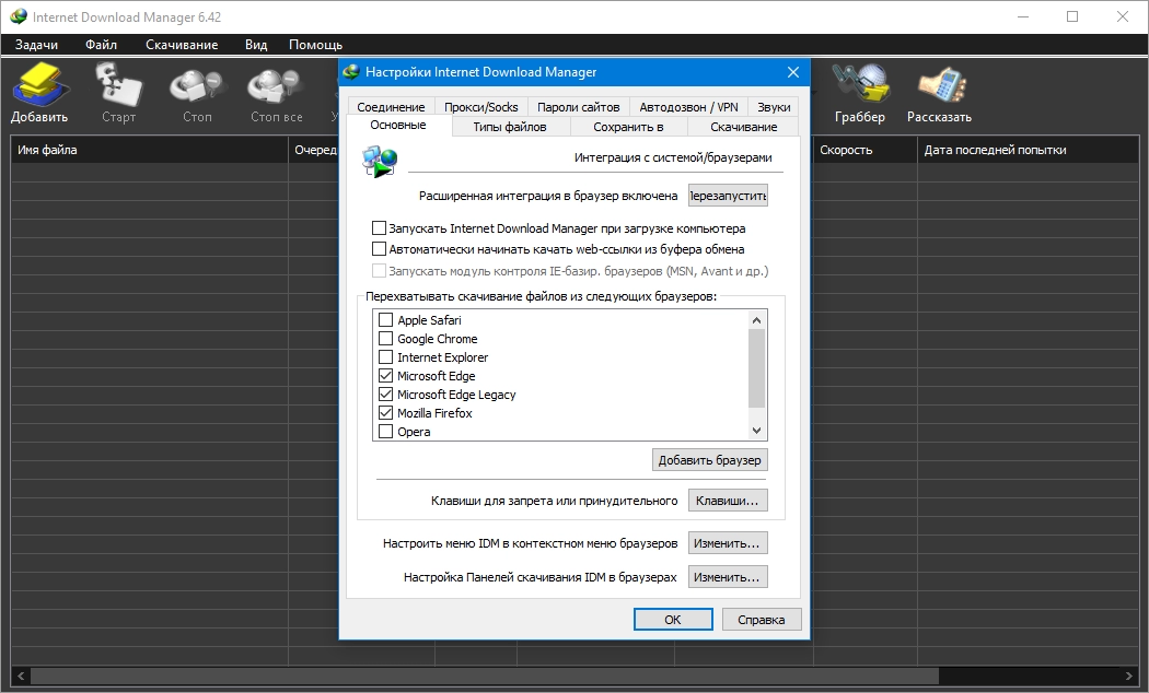 - Включить при запросе надстройку IDM integration (может потребоваться разовый перезапуск браузера, если после клика по ссылке IDM не перехватит закачку).